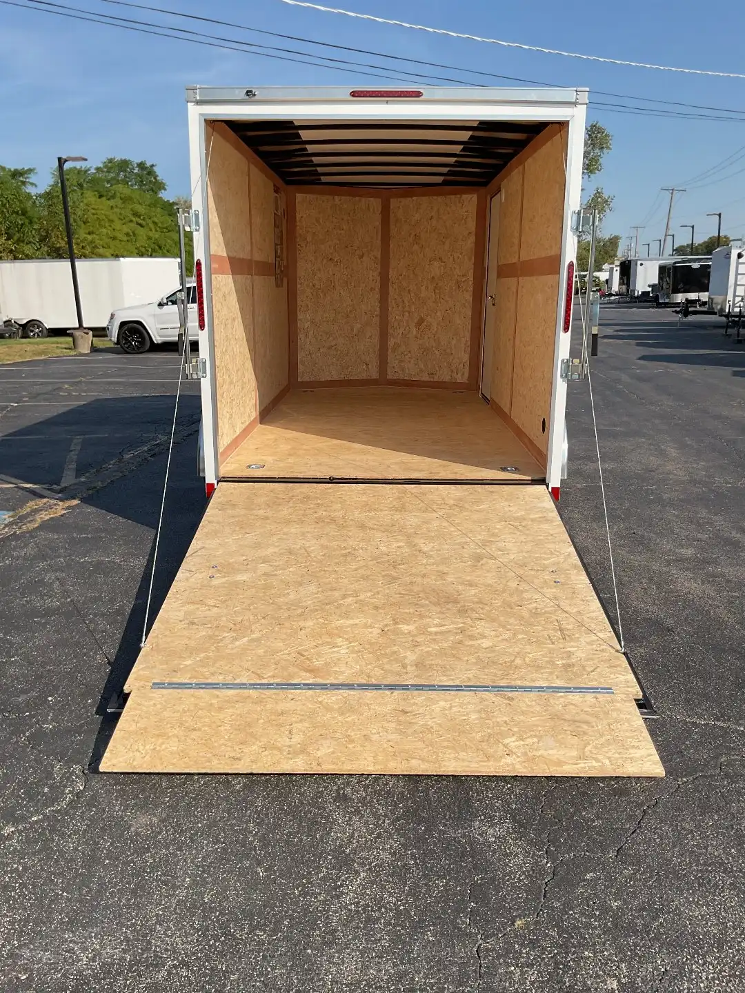A side access door and lockable rear ramp door will help keep your load safe and secure. Whether you’re moving business merchandise, motorcycles, or tools, this trailer fits your needs. Moreover, its tandem axles and electronic brakes provide even smoother handling, even when fully loaded, and more control.