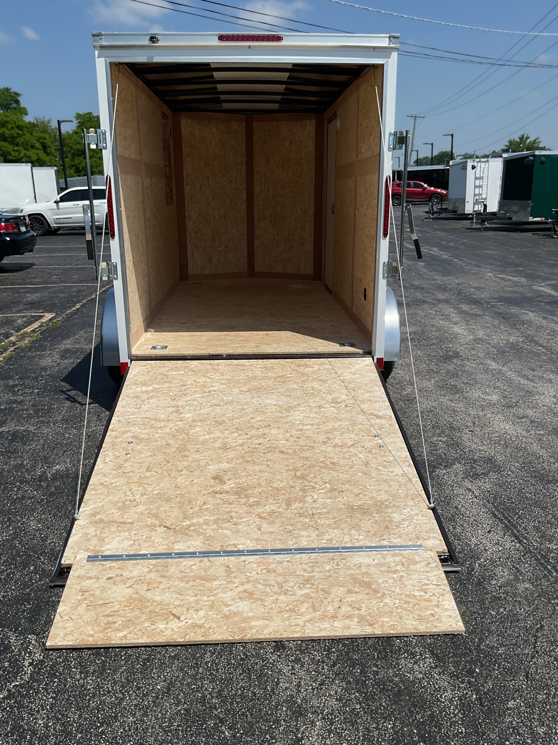 You will be having a greater hauling power within the same size of 6′ x 12. The higher GVWR means you can haul heavier machinery, larger pallets, or bulkier materials without pushing the limits. The steel frame delivers lasting strength, while the one-piece aluminum roof shields your cargo from rain, snow, and road debris.