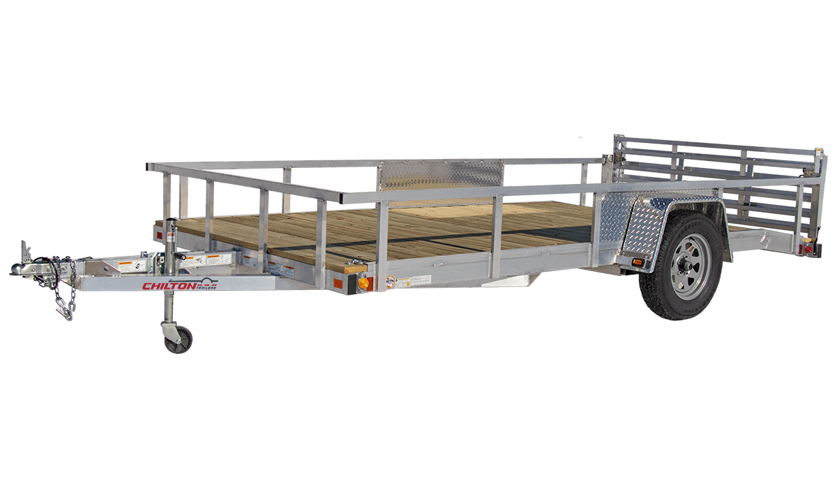 This 7 x 12 ft heavy-duty single axle utility trailer is ideal for hauling low ground clearance equipment, with a 2 ft beavertail to reduce tailgate height, and an aluminum load retaining rail to keep your cargo in place. Both the standard straight rear ramp and optional bi-fold ramp fold down flat on the trailer deck when hauling empty. Every Chilton Trailer is built by hand with a fully welded frame and ramp for years of reliability. Standard features include: