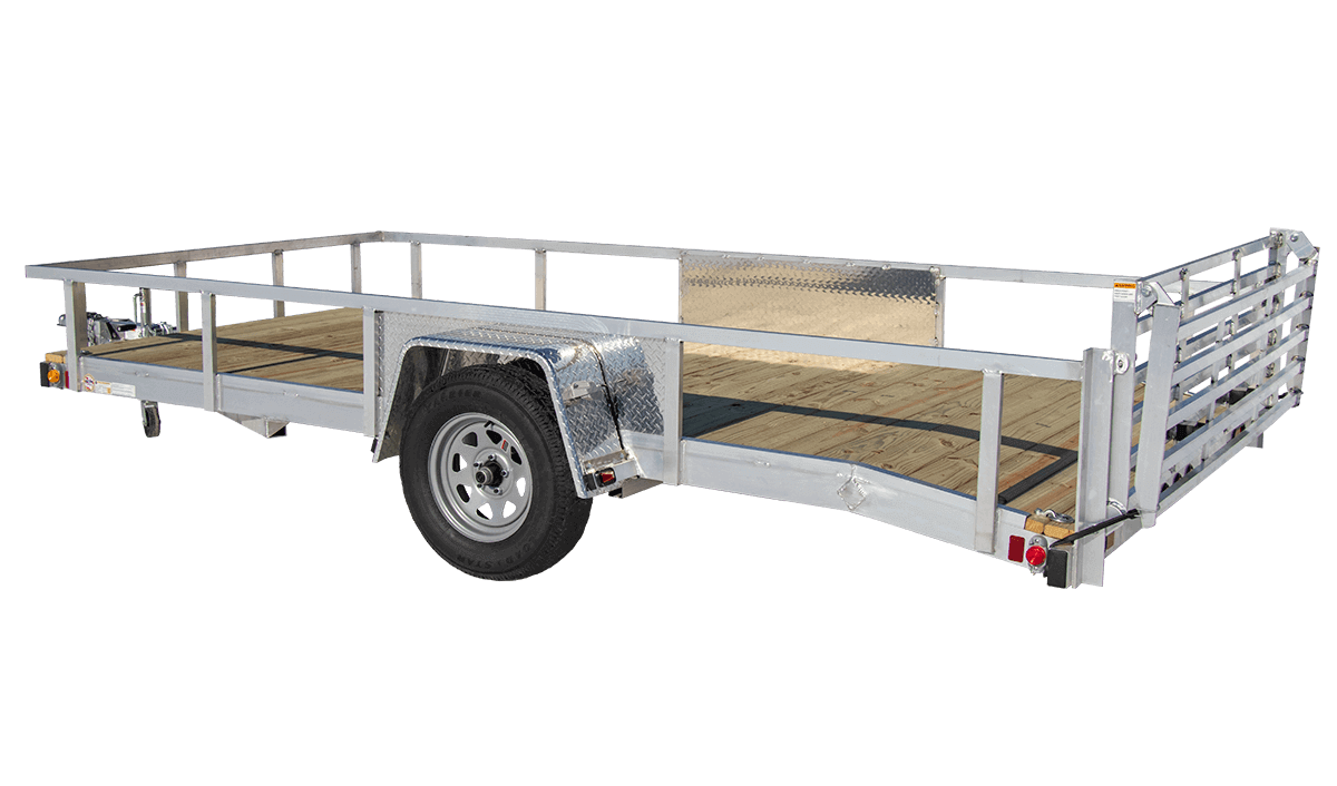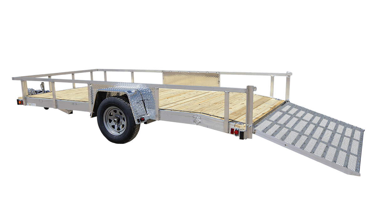 This 7×14 ft heavy-duty single axle utility trailer features a 2 ft beavertail to reduce tailgate height, making hauling low ground clearance equipment easier, with an aluminum load retaining rail to keep your cargo in place. Both the standard straight rear ramp and optional bi-fold ramp fold down flat on the trailer deck when hauling empty. Every Chilton Trailer is built by hand with a fully welded frame and ramp for years of reliability. Standard features include: